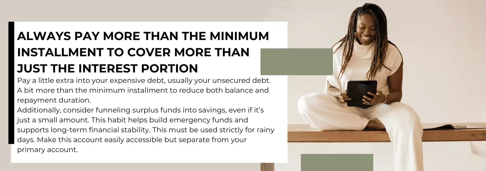 - Credit card debt (R50,000, 25% interest, 5 years): R88,181 interest paid